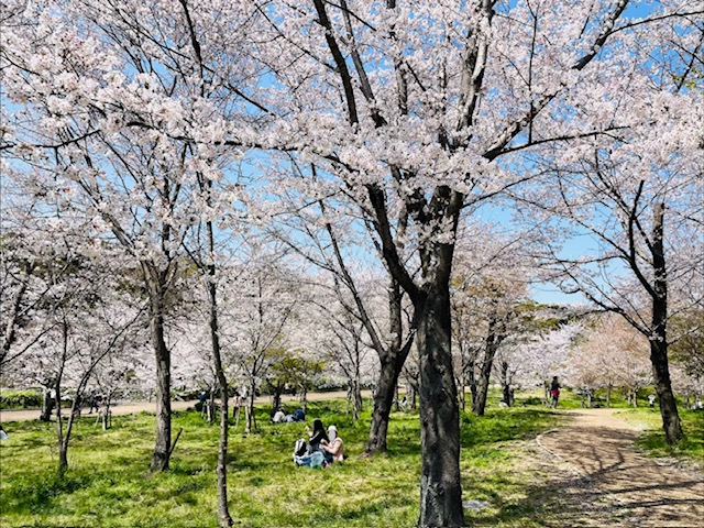 東大路より中央口より離れていることもあり、人の混み具合も空いている感じがしました。シートを引いたり、ベンチに座ってお花見している方もいらっしゃり、のんびり気持ちよさそうでした。桃源郷のような空間でした。